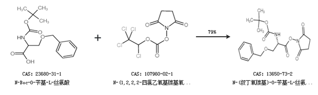 2.通过N-Boc-O-苄基-L-丝氨酸和N-(1,2,2,2-四氯乙氧基羰基氧)琥珀酰亚胺合成N-(叔丁氧羰基)-O-苄基-L-丝氨酸 N-琥珀酰亚胺酯,收率约79%;