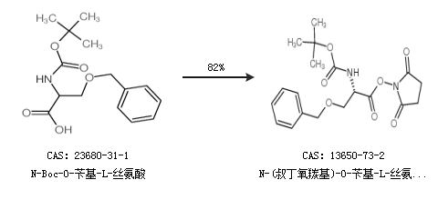 1.通过N-Boc-O-苄基-L-丝氨酸合成N-(叔丁氧羰基)-O-苄基-L-丝氨酸 N-琥珀酰亚胺酯,收率约82%;