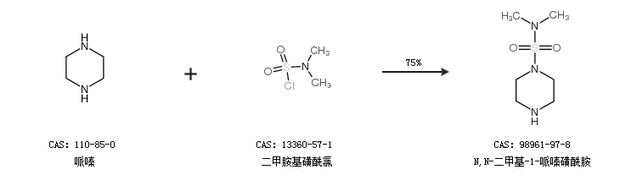 2.通过哌嗪和二甲胺基磺酰氯合成N,N-二甲基-1-哌嗪磺酰胺,收率约75%;