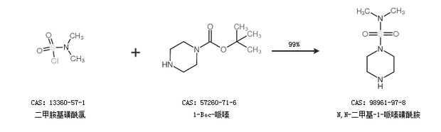 1.通过二甲胺基磺酰氯和1-Boc-哌嗪合成N,N-二甲基-1-哌嗪磺酰胺,收率约99%;