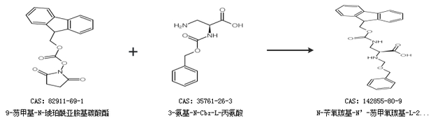 1.通过9-芴甲基-N-琥珀酰亚胺基碳酸酯和3-氨基-N-Cbz-L-丙氨酸合成N-苄氧羰基-N’-芴甲氧羰基-L-2,3-二氨基丙酸