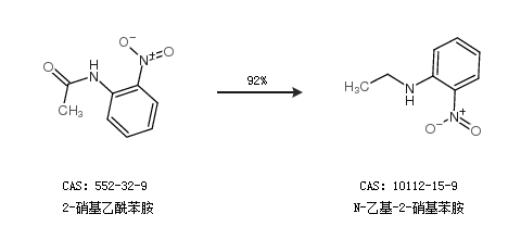 1.通过2-硝基乙酰苯胺合成N-乙基-2-硝基苯胺,收率约92%;