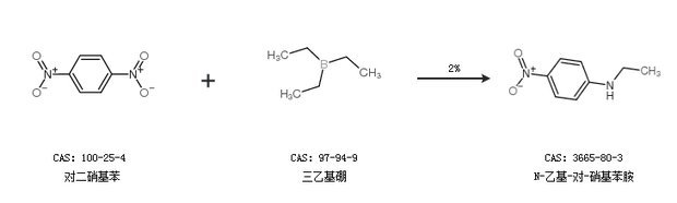 2.通过对二硝基苯和三乙基硼合成N-乙基-对-硝基苯胺,收率约2%;