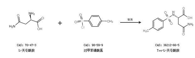 1.通过L-天冬酰胺和对甲苯磺酰氯合成Tos-L-天冬酰胺,收率约91%;