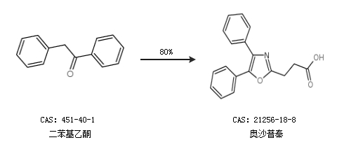 2.通过二苯基乙酮合成奥沙普秦,收率约80%;