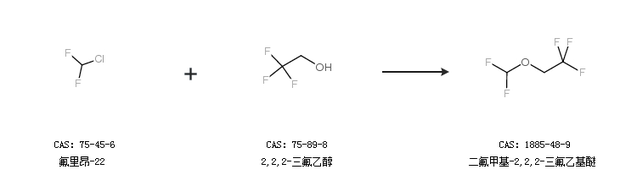 1.通过氟里昂-22和2,2,2-三氟乙醇合成二氟甲基-2,2,2-三氟乙基醚