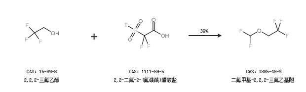 2.通过2,2,2-三氟乙醇和2,2-二氟-2-(氟磺酰)醋酸盐合成二氟甲基-2,2,2-三氟乙基醚,收率约36%;