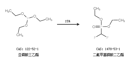 2.通过亚磷酸三乙酯合成二氟甲基膦酸二乙酯,收率约15%;