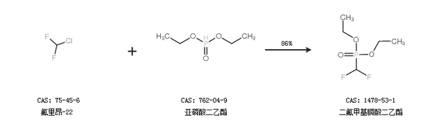 1.通过氟里昂-22和亚磷酸二乙酯合成二氟甲基膦酸二乙酯,收率约86%;