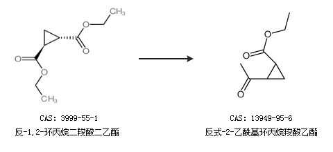 2.通过反-1,2-环丙烷二羧酸二乙酯合成反式-2-乙酰基环丙烷羧酸乙酯
