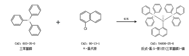 1.通过三苯基膦和α-氯代萘合成反式-氯(1-萘)双(三苯基膦)-镍,收率约41%;