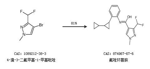 1.通过4-溴-3-二氟甲基-1-甲基吡唑合成氟唑环菌胺,收率约81%;