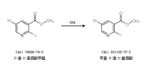 1.通过5-溴-2-氯烟酸甲酯合成甲基 5-溴-2-氟烟酸,收率约58%;