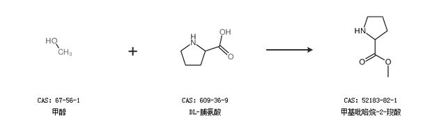 1.通过甲醇和DL-脯氨酸合成甲基吡咯烷-2-羧酸