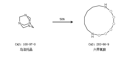 英文别名 Hexamethylene triperoxide diamine;3,4,8,9,12,13-Hexaoxa-1,6-diazabicyclo(4.4.4)tetradecane;1,6-diaza-3,4,8,9,12,13-hexaoxabicyclo<4.4.4>tetradecane;HMTD;1,6-Diaza-3,8,9,12,13-hexaoxabicyclo[4.4.4]tetradecane;