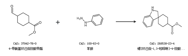 1.通过4-甲酰基环己烷羧酸甲酯和苯肼合成螺[环己烷-1,3-吲哚啉]-4-羧酸甲酯