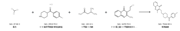 1.通过氯仿、4-(4-氟苯甲酰基)哌啶盐酸盐、4-甲基-2-戊酮和3-(2-氯乙基)-2-甲基吡啶并[1,2-a]嘧啶-4-酮合成哌南氟酮