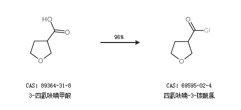 1.通过3-四氢呋喃甲酸合成四氢呋喃-3-羰酰氯,收率约96%;