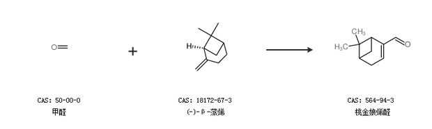2.通过甲醛和(-)-β-蒎烯合成桃金娘烯醛