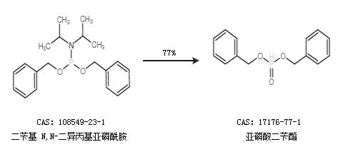 1.通过二苄基 N,N-二异丙基亚磷酰胺合成亚磷酸二苄酯,收率约77%;