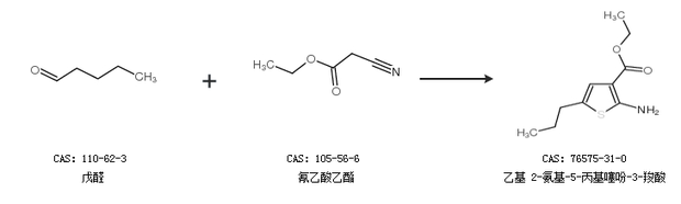 1.通过戊醛和氰乙酸乙酯合成乙基 2-氨基-5-丙基噻吩-3-羧酸
