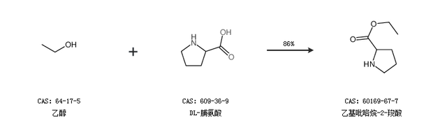 2.通过乙醇和DL-脯氨酸合成乙基吡咯烷-2-羧酸,收率约86%;