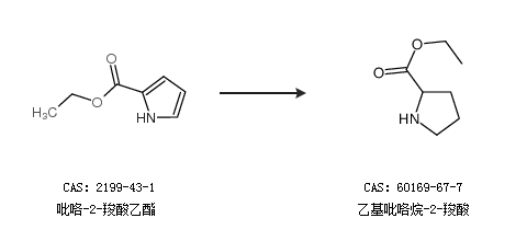 1.通过吡咯-2-羧酸乙酯合成乙基吡咯烷-2-羧酸