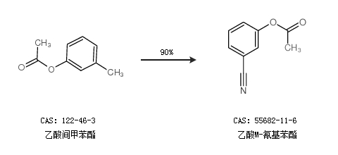 1.通过乙酸间甲苯酯合成乙酸M-氰基苯酯,收率约90%;