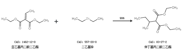 1.通过亚乙基丙二酸二乙酯和二乙基锌合成仲丁基丙二酸二乙酯,收率约99%;