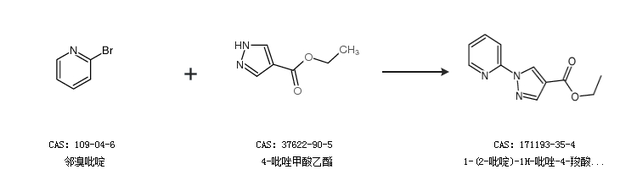2.通过邻溴吡啶和4-吡唑甲酸乙酯合成1-(2-吡啶)-1H-吡唑-4-羧酸乙酯