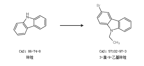 1.通过咔唑合成3-溴-9-乙基咔唑