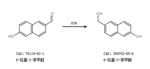 2.通过6-羟基-2-萘甲醛合成6-羟基-2-萘甲醇,收率约83%;