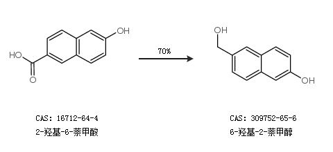 1.通过2-羟基-6-萘甲酸合成6-羟基-2-萘甲醇,收率约70%;