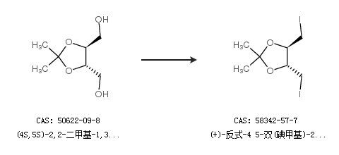 2.通过(4S,5S)-2,2-二甲基-1,3-二氧戊环-4,5-二甲醇合成(+)-反式-4 5-双(碘甲基)-2,2-二甲基-1 3-二氧戊环