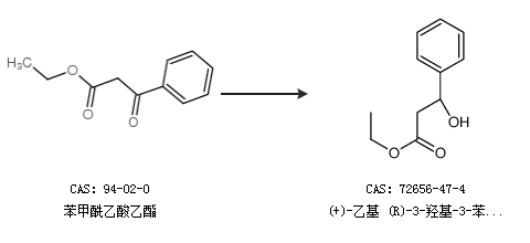 1.通过苯甲酰乙酸乙酯合成(+)-乙基 (R)-3-羟基-3-苯丙酸盐,收率约97%;