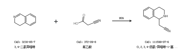 1.通过3,4-二氢异喹啉和氰乙酸合成(1,2,3,4-四氢-异喹啉-1-基)乙腈,收率约95%;