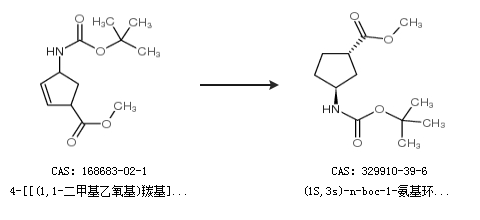 1.通过4-[[(1,1-二甲基乙氧基)羰基]氨基]-2-环戊烯-1-羧酸甲酯合成(1S,3s)-n-boc-1-氨基环戊烷-3-羧酸甲酯