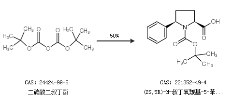 1.通过二碳酸二叔丁酯合成(2S,5R)-N-叔丁氧羰基-5-苯基吡咯烷-2-甲酸,收率约50%;