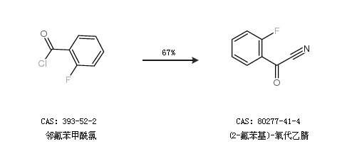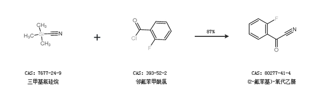 2.通过三甲基氰硅烷和邻氟苯甲酰氯合成(2-氟苯基)-氧代乙腈,收率约87%;