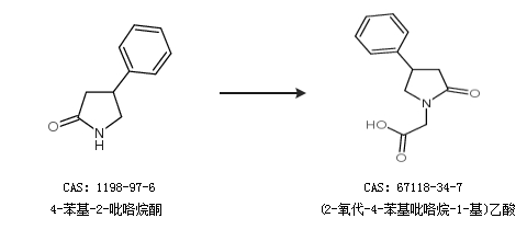 英文别名 2-oxo-4-phenyl-1-pyrrolidineacetic acid;(2-oxo-4-phenylpyrrolidin-1-yl)acetic acid;2-Oxo-4-phenylpyrrolidine-1-acetic acid;