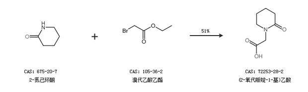 1.通过2-氮己环酮和溴代乙酸乙酯合成(2-氧代哌啶-1-基)乙酸,收率约51%;