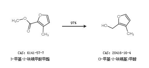 1.通过3-甲基-2-呋喃甲酸甲酯合成(3-甲基-2-呋喃基)甲醇,收率约97%;