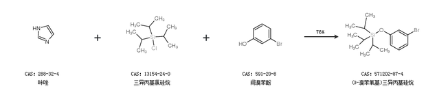2.通过咪唑、三异丙基氯硅烷和间溴苯酚合成(3-溴苯氧基)三异丙基硅烷,收率约76%;