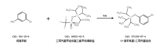 1.通过间溴苯酚和三异丙基甲硅烷基三氟甲烷磺酸盐合成(3-溴苯氧基)三异丙基硅烷,收率约70%;