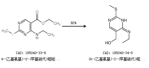 1.通过4-(乙基氨基)-2-(甲基硫代)嘧啶-5-羧酸乙酯合成(4-(乙基氨基)-2-(甲基硫代)嘧啶-5-基)甲醇,收率约92%;