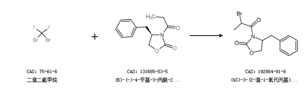 2.通过二溴二氟甲烷和(R)-(-)-4-苄基-3-丙酰-2-恶唑烷酮合成(4S)-3-(2-溴-1-氧代丙基)-4-(苯基甲基)-2-恶唑啉酮