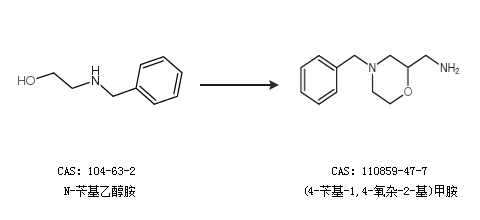 1.通过N-苄基乙醇胺合成(4-苄基-1,4-氧杂-2-基)甲胺