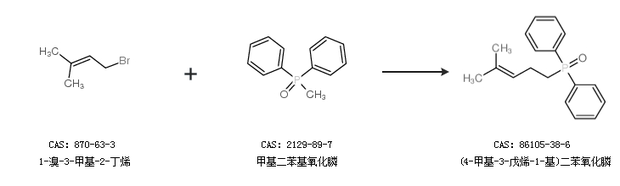 2.通过1-溴-3-甲基-2-丁烯和甲基二苯基氧化膦合成(4-甲基-3-戊烯-1-基)二苯氧化膦