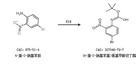 1.通过4-溴-2-硝基苯胺合成(4-溴-2-硝基苯基)氨基甲酸叔丁酯,收率约81%;