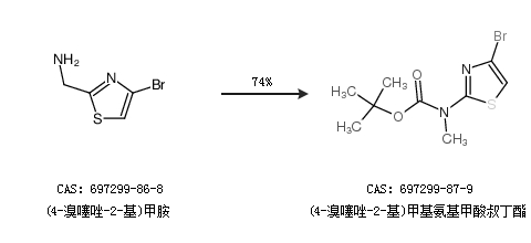 1.通过(4-溴噻唑-2-基)甲胺合成(4-溴噻唑-2-基)甲基氨基甲酸叔丁酯,收率约74%;